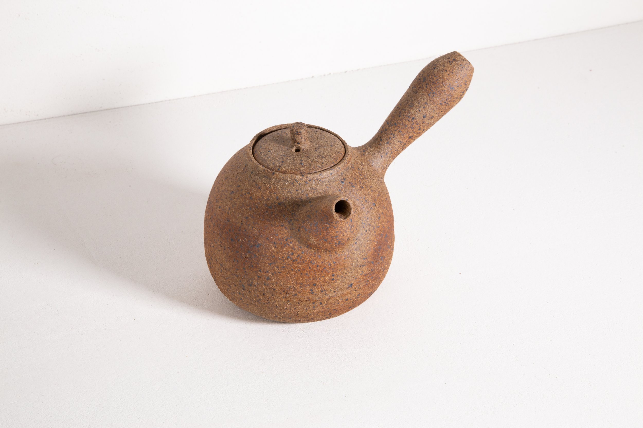I threw this side-handle teapot on the wheel using a speckled stoneware claybody that I’ve been working with for the last 20 years. I fired it to cone 11 in a reduction atmosphere, allowing the oxygen-depleted flame to interact with the minerals in the surfaces of the pots to create subtle shifts in tone and texture. Each surface holds a quiet record of this process—organic and unpredictable—bringing a subtle wabi-sabi element into the tea ceremony. Inside the pot, I left the clay unglazed so it will develop a patina over years of steeping, deepening the connection between the vessel and your tea practice.